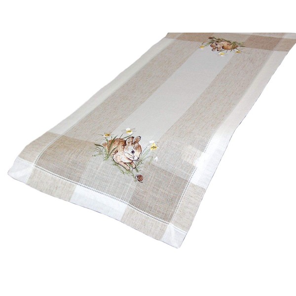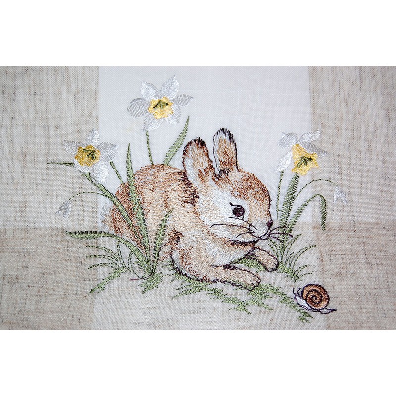 Raebel Ecru, Beige-colourful Embroidery "Rabbit" Linen Look