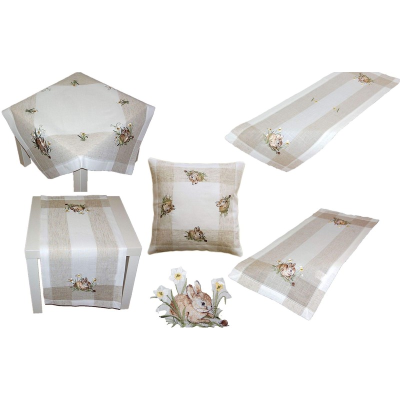 The pretty Easter tablecloths and Easter cushions impress with their understated colouring and adorable silk embroidery with Easter motifs.