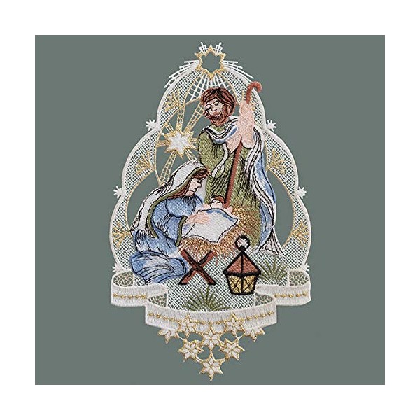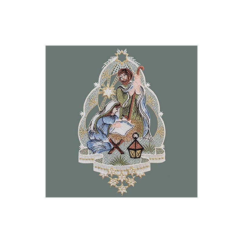 Raebel OHG Window Decoration Plauen Embroidery Nativity Scene with Suction Holder