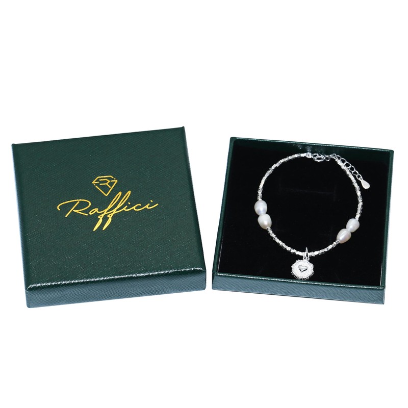 Raffici Silver Bracelet for Women 925 Sterling Silver with Heart and Natural Freshwater Pearls for Womens Jewellery Ladies Love Heart Bracelets Valentine's Day Mother's Day Gifts for Her Wife Mum