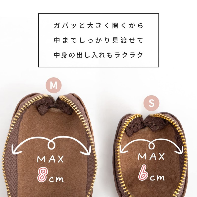 - [Storage Estimates] M size 1 - 100 yen coins: about 50 coins 500 yen coins: about 30 small coins 1 - 100 yen coins: about 15 coins Size: M length 1.2 inches (30 mm) x width 4.7 inches (120 mm) x thickness 28 mm (19 g). Size S length 19 mm). W x 7 0.2 inches (5 mm) x Thickness: 1.1 inches (28 mm); Weight: 0.5 oz (15 g); Material: Genuine leather shrink leather