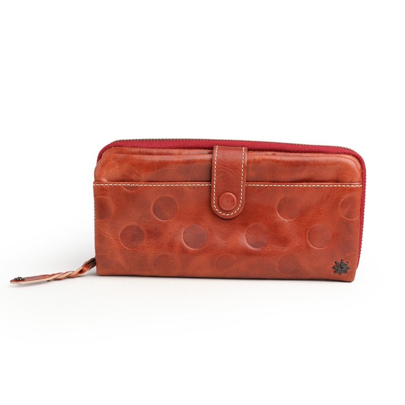 Rafraf Women's Long Wallet with Dot Embossed Round Zipper, red brown