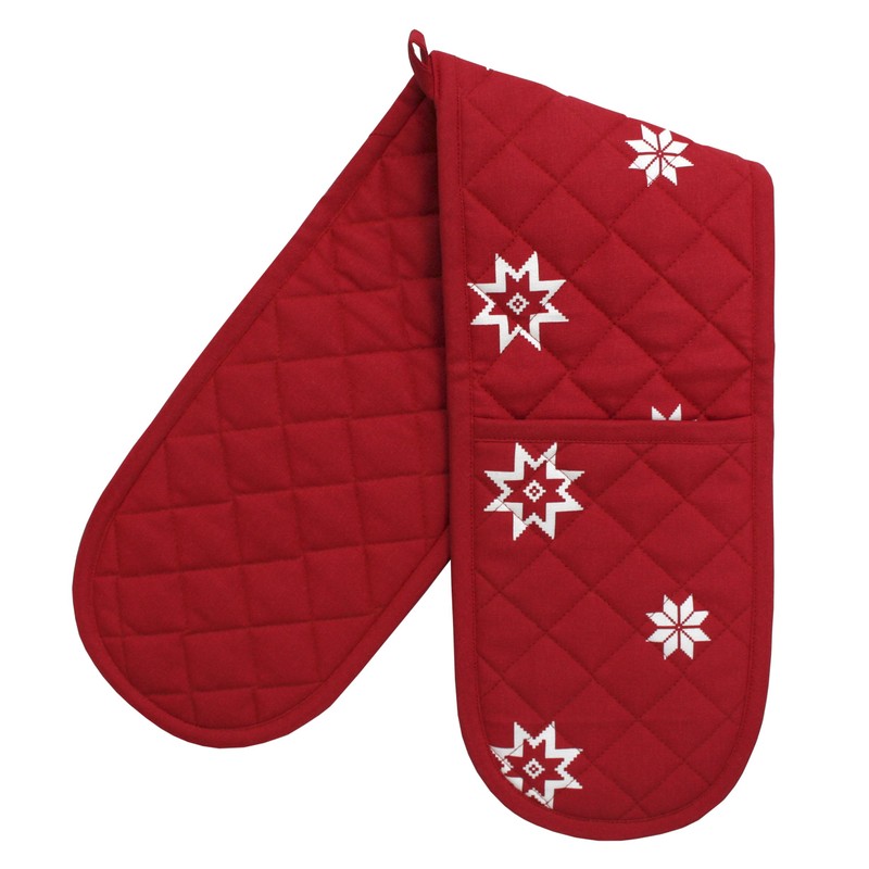 Ragged Rose Double Oven Gloves, Cotton, red, 85 x 17 cms