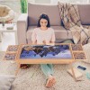 【More Occasions to Use】The puzzle table for adults is light and stable. Foldable legs make it easy to put, portable puzzle board on the sofa, floor, coffee table, dining table, or even bed for jigsaw puzzles. You can easily slide the puzzle board under your sofa or bed to save space when it not in use.