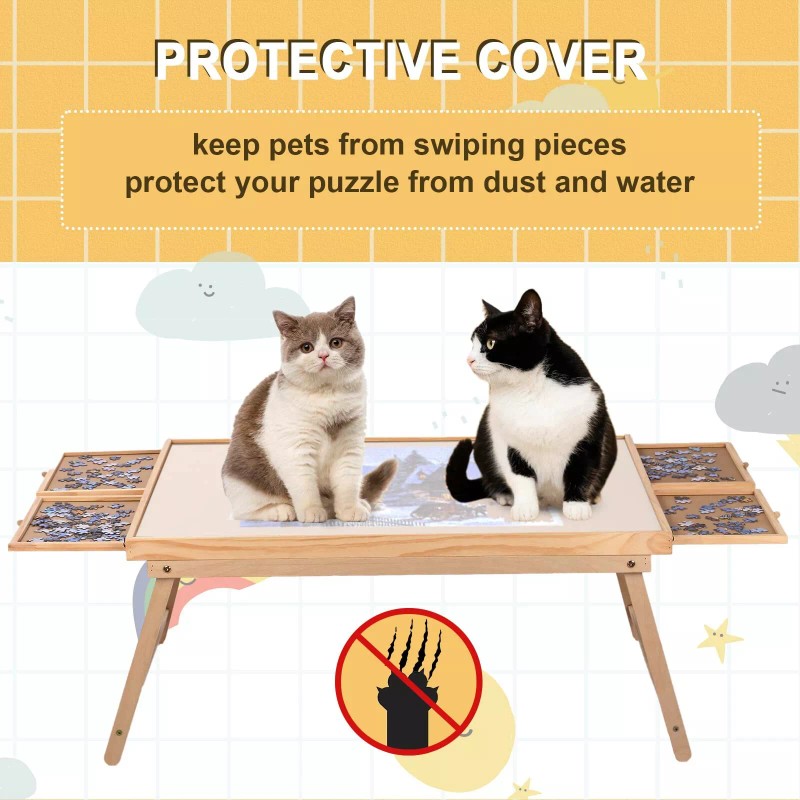 【4 Drawers & 1 Cover】The 4 drawers are large enough to sort several piles of pieces. Every drawer is specially with a metal clip to keep you drawer from sliding out during the move. The plastic protective cover is a great feature to keep your pets from swiping puzzle pieces.