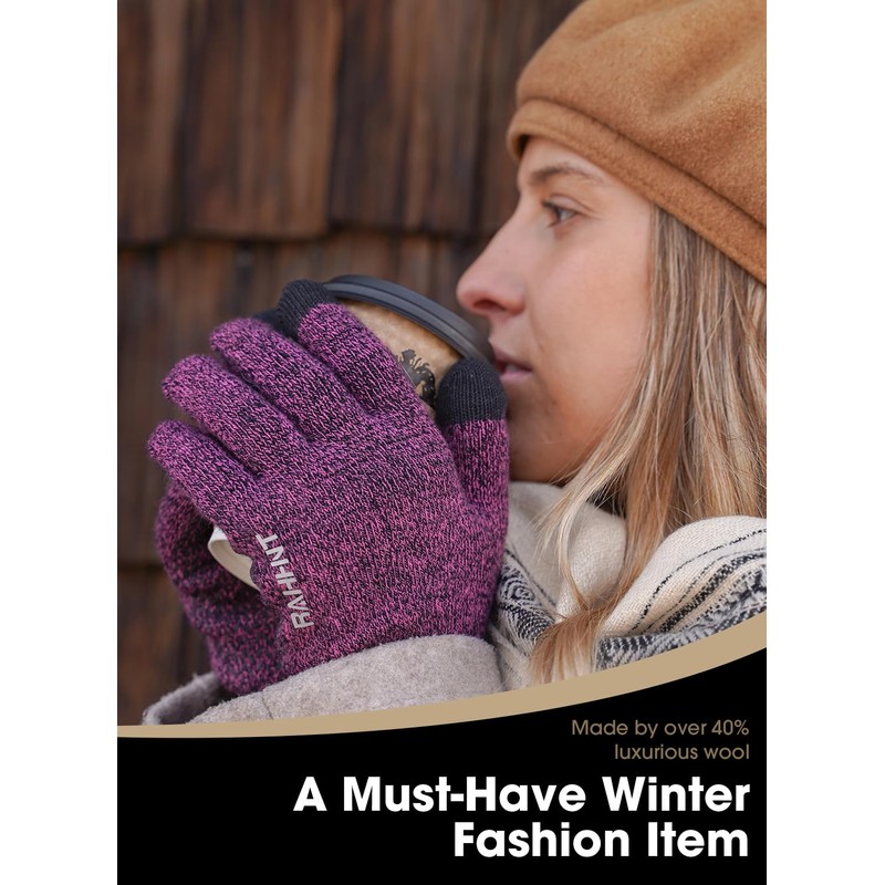 Rahhint Thermal Winter Gloves for Men Women Pure Wool Knit Gloves with fleece lining insulated Liner Keep Hand Warm Gift