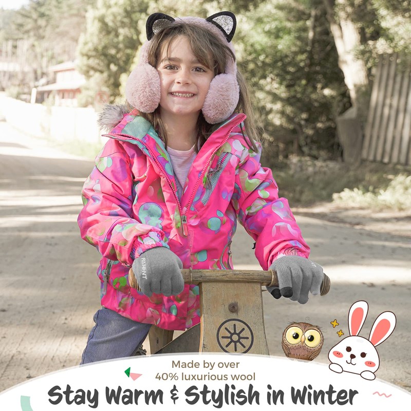 Rahhint Wool Kids Gloves for Boys Girls Winter Thermal Double Knit Gloves wit...