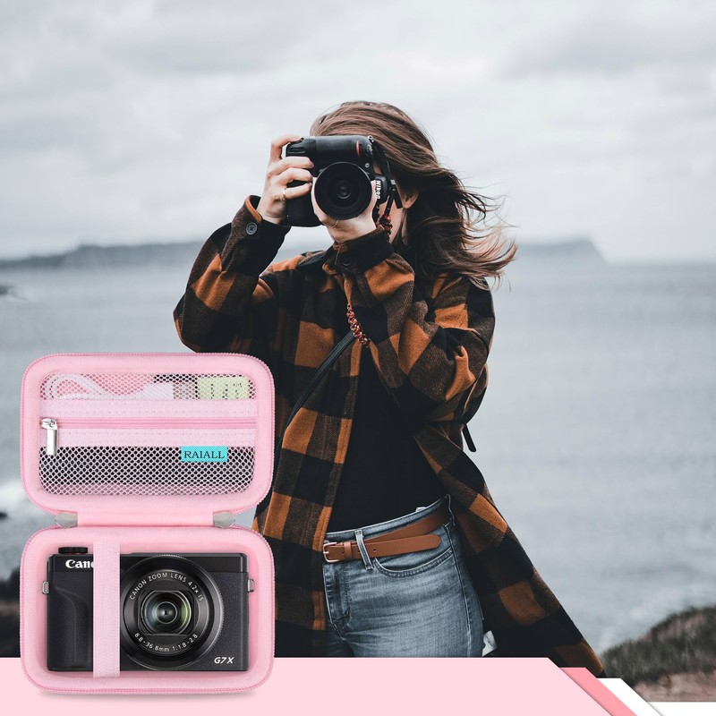 RAIALL Camera Case for Canon PowerShot G7 X Mark II/ G7X Mark III Digital Camera, G7X Mark III Vlogging Camera Travel Hard Bag, Protective Storage Cover Holder for Batteries, SD Card and Cable, Pink