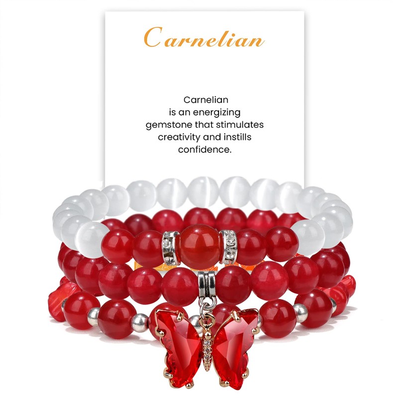 - 🦋【3PC Butterfly Carnelian Bracelets】Nature stone has been known for its healing properties,the combination of carnelian and selenite helps reduce anxiety and stress.Butterfly charm pendant makes the bracelet more unique and will bring you a charming feeling in any occasion.