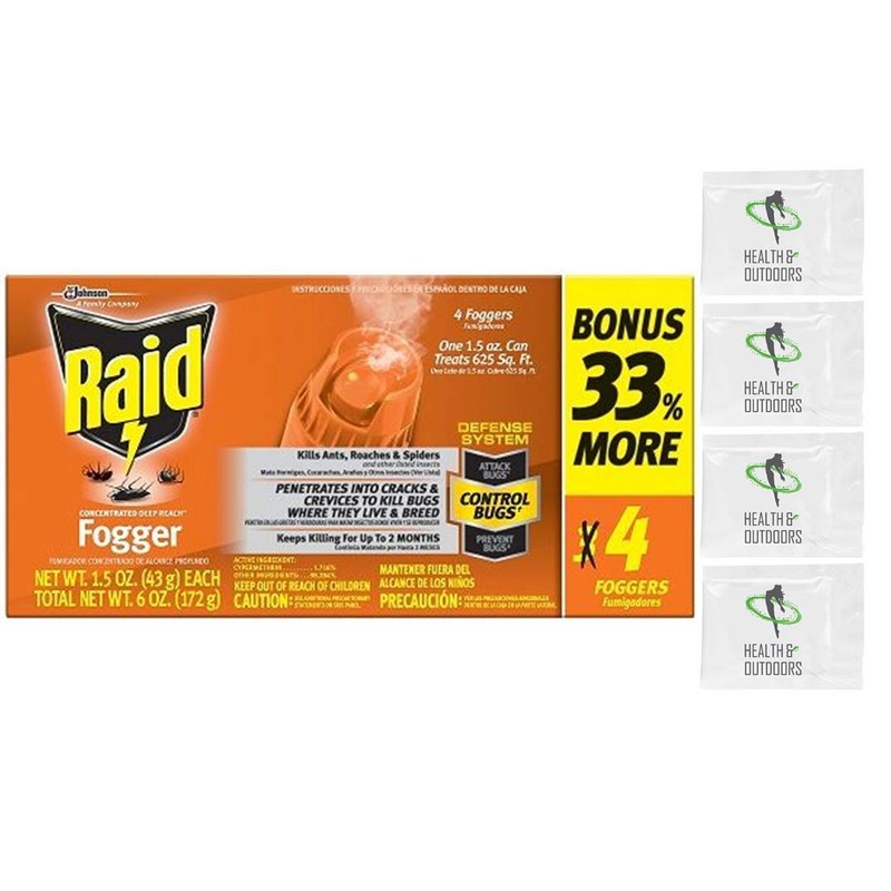Raid Concentrated Fogger 1.5 Oz - 4 Pack W/Health and Outdoors Wipes