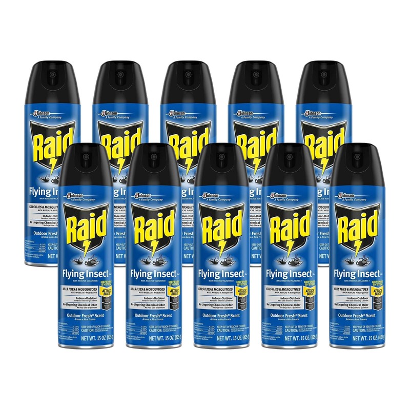 Raid Flying Insect Killer is specially formulated to kill a number of flying insects including flies, mosquitoes, wasps, and hornets. It can be used both indoors and outdoors and has a pleasant Outdoor Fresh scent.