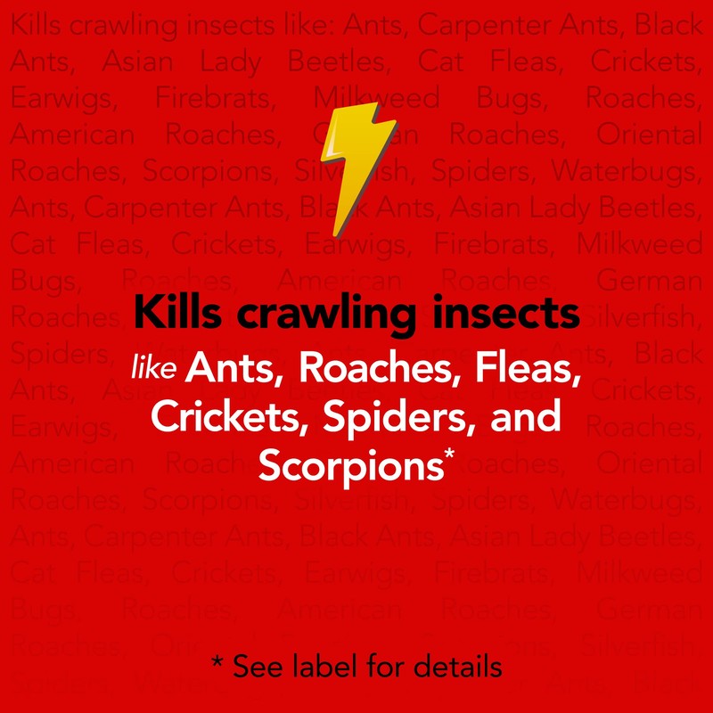 - Kills: Ants, Crickets, Multi-colored Asian Lady Beetles, Roaches, Silverfish, Spiders, Waterbugs