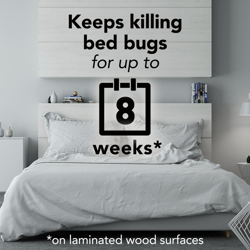 - Keeps eliminating bed bugs for up to 8 weeks on laminated wood surfaces