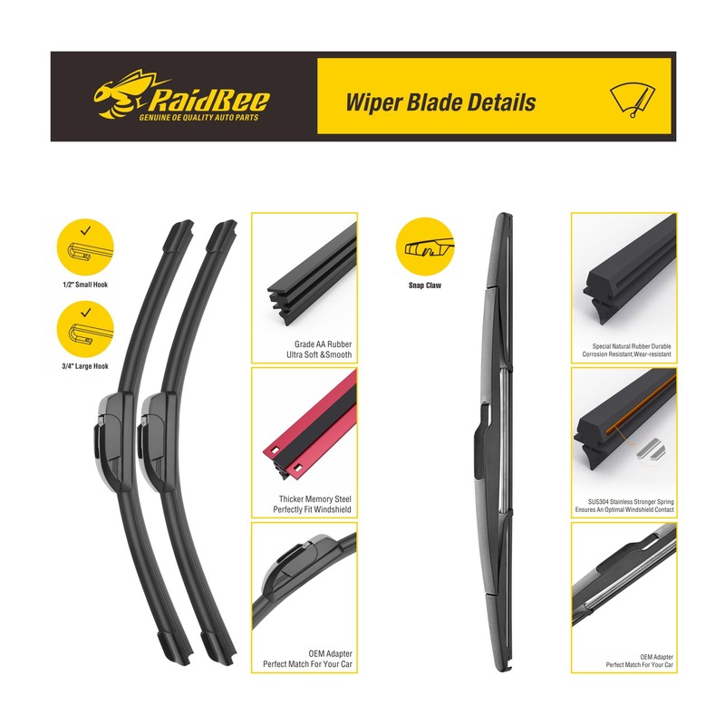 - Sturdy and Durable: Factory direct sales, original quality. High quality raw materials ensure long lifetime of RaidBee windshield wiper blades . RaidBee windshield wiper can hold the windshield tightly to prevent it from falling off.