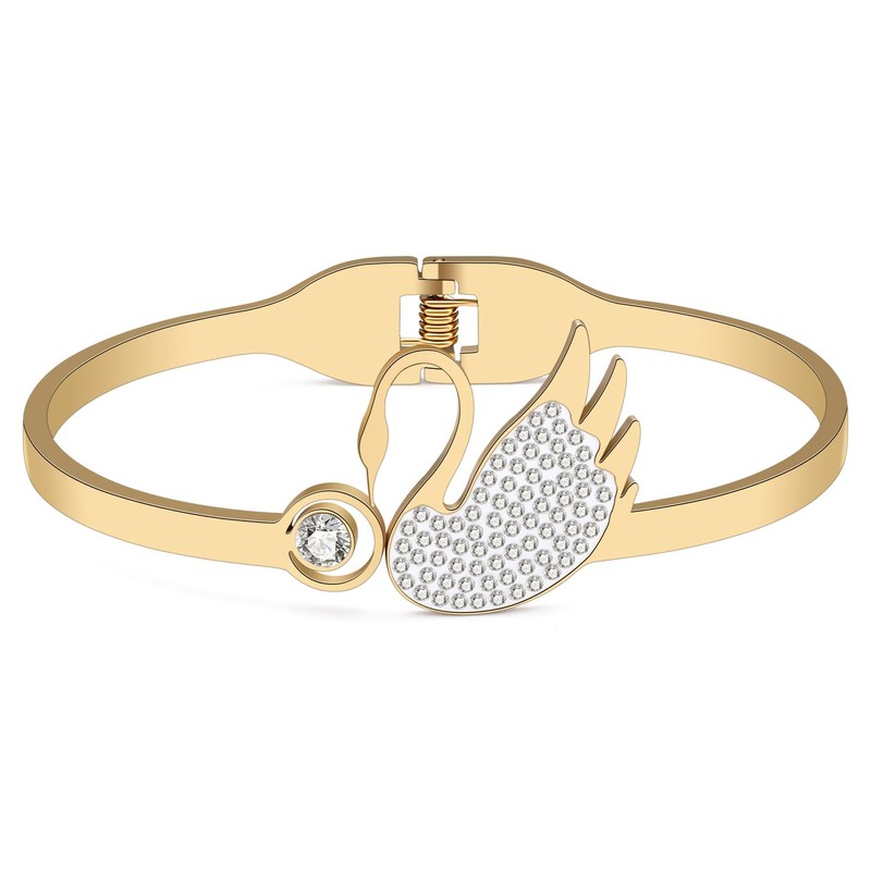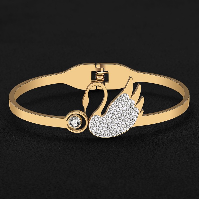 RAIDIN Gold Bangle Bracelet for Women Girls Mom 18K Gold Plated Stainless Steel Dainty Rhinestone Crystal Cute Animals Cuff Bracelets Fashion Jewellery for Gifts Party Decoration, Stainless Steel