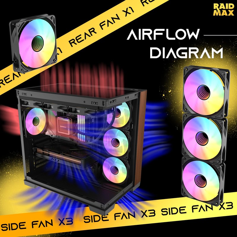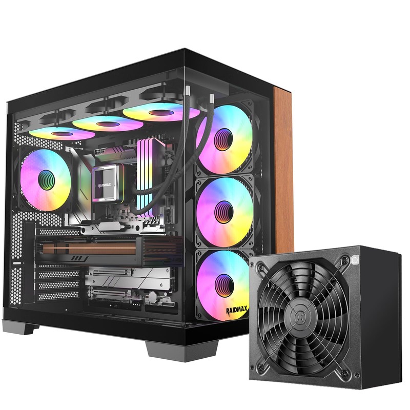 RAIDMAX Infinita Series I610 Dual Chamber ATX Gaming Case, Pre-Install Fans, 270° Seemless O11 Tempered Glass, Supports Up to 400mm GPU and 360mm Water Cooler (Wood 700W)