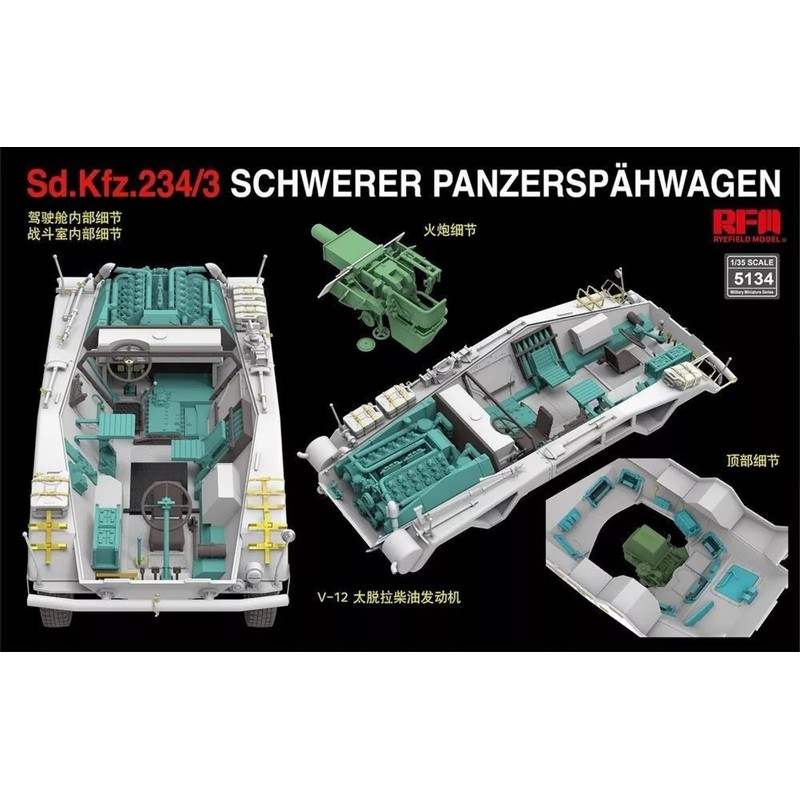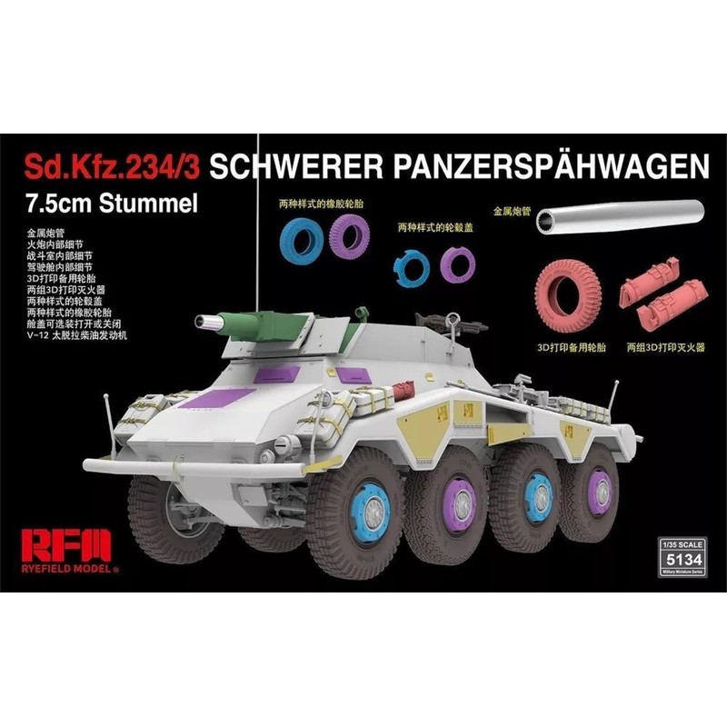 Raifield Model RFM5134 1/35 Sd.Kfz.234/3 Schutumel 8 Wheeler Heavy Armored Reconnaissance Car Plastic Model with 3.0 inch (7.5 cm) Gun