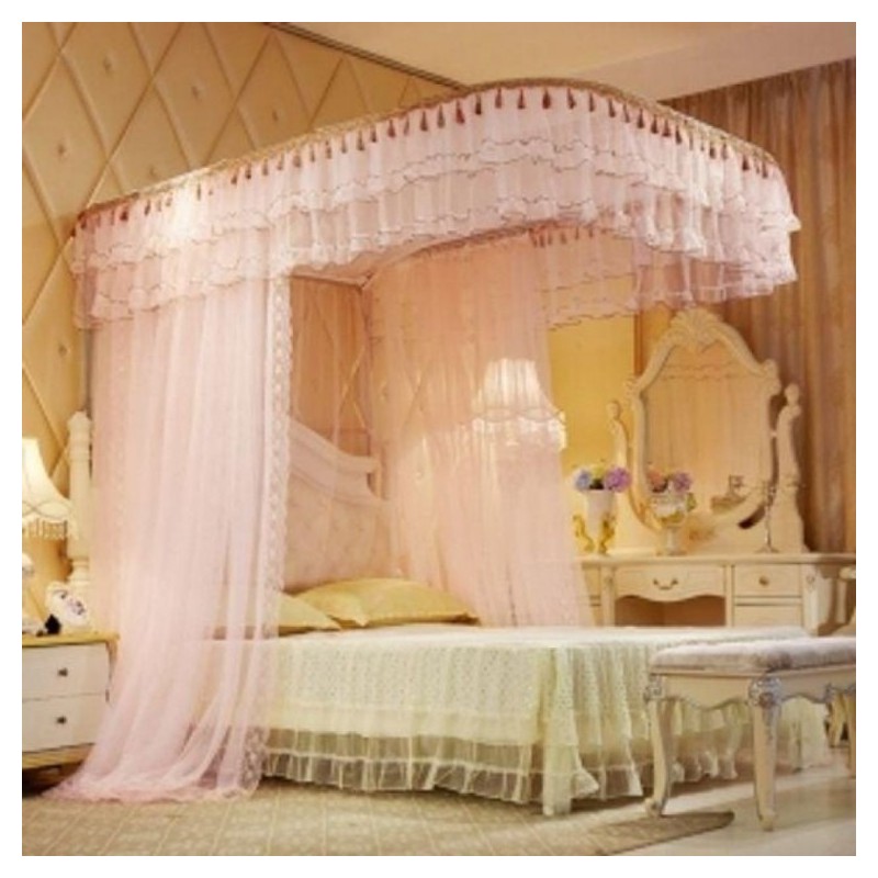 Rail-Type Bed Mosquito Net (150x200cm) (Light Pink) Lace Mosquito Net