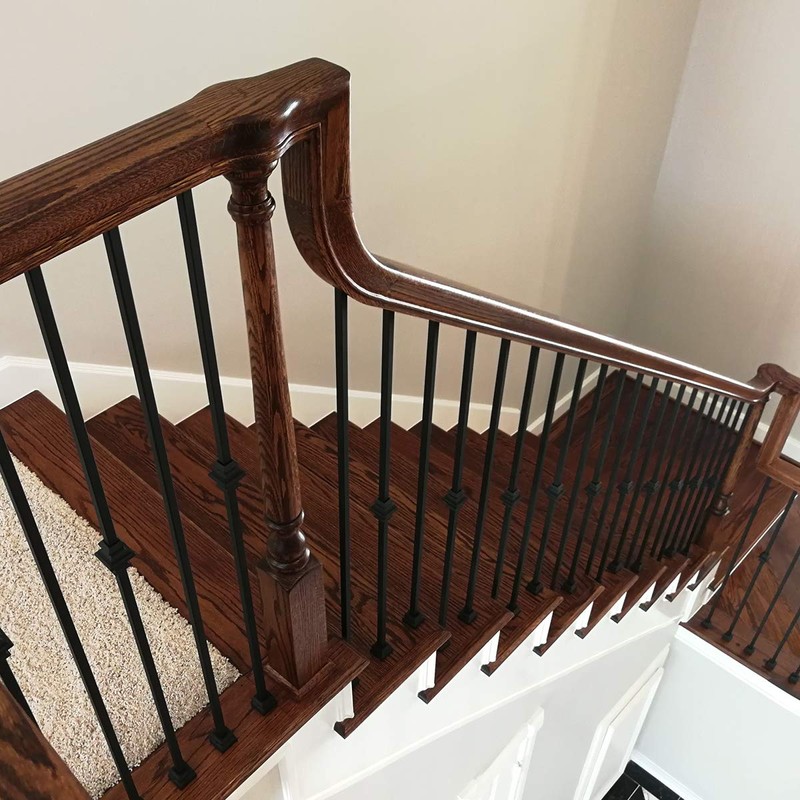 - All our stair iron balusters are powder-coated with a smooth and durable finish very resistant to scratches, cracking, peeling, UV rays and rust.