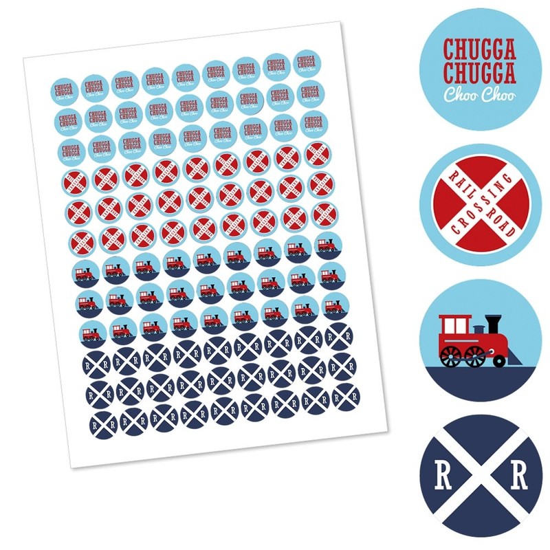 Railroad Party Crossing - Steam Train Birthday Party or Baby Shower Round Candy Sticker Favors - Labels Fit Chocolate Candy (1 Sheet of 108)