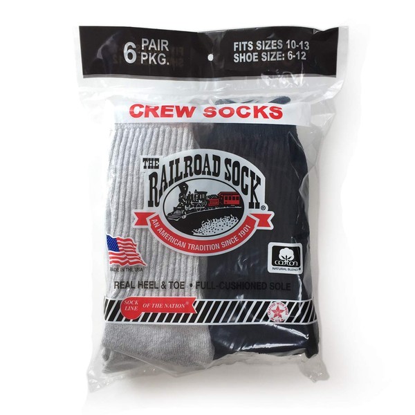 RAILROAD SOCK Crew Socks 6 Pairs (Grey/Black)