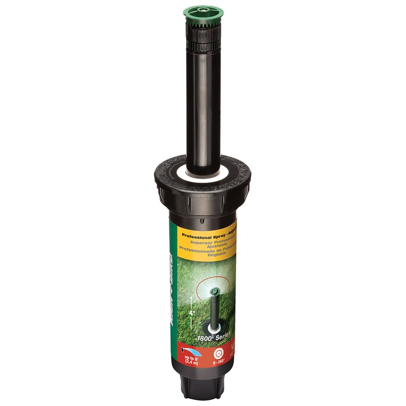 Rain Bird 1804AP8 Professional Pop-Up Sprinkler, Adjustable 0-360° Pattern, 6' - 8' Spray Distance, 4" Pop-up Height
