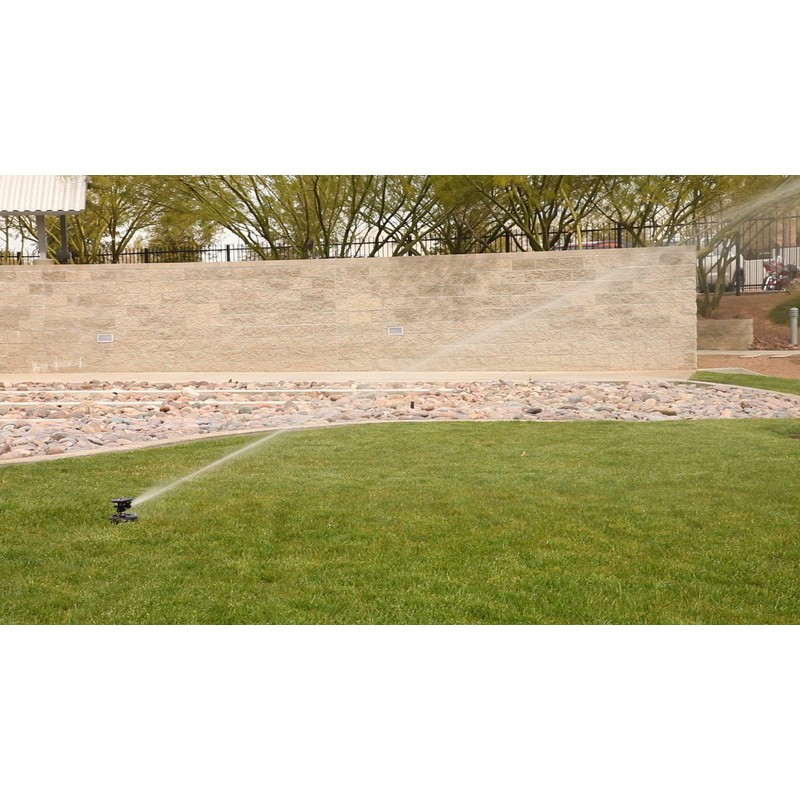 Rain Bird AG-5 All Gallonage Pop-Up Impact Sprinkler, Adjustable 20° to 360° Pattern, 24' to 45' Spray Distance. Rain Bird pop-up impact sprinklers are a popular tradition for underground watering systems; providing homeowners with convenience and reliability. Ideal for high traffic areas, they pop-up to water and retract out of sight when finished. This heavy-duty impact has the strength and performance of industrial and commercial products yet is easy to install and operate. Pop-up impact sprinklers are long-lasting and particularly well suited for performance with heavy-mineral content hard water and well water that can clog and corrode other sprinklers. An excellent choice for reclaimed water irrigation systems. Brass weighted "Water Saver" PJ spray guide arm controls stream and prevents side splash onto buildings and walkways. Arm is double-weighted for slower rotation and increased distance of throw. Diffuser screw breaks water into smaller droplets for uniform watering and allows up to 25% radius reduction. Heavy-duty, high impact case with sturdy reinforced ribbed design. Rolled lip design aids in setting proper installation height, prevents grass and weeds from growing into head, and minimizes backwash. Includes (5) interchangeable color-coded Matched Precipitation Rate nozzles; Blue #8 nozzle comes pre-installed. No tools needed to change nozzles. 3-1/2" pop-up height helps clear tall grass. Patented pressure-activated wiper seal assures reliable pop-up and pop-down. Spray distance from 22’ to 45’. Full circle (360°) or part circle (20° to 340°) coverage with infinite pattern adjustment. Combination 1/2" or 3/4" bottom inlet and 1/2" side female connections offer more installation flexibility. Multiple nozzle options provide for all-gallonage flow with variable watering rates of 1.5 gallons per minute to 8.4 gallons per minute. Spacing from 24' to 45' apart. Designed for wide pressure range from 25 to 50 PSI. **Sold separately is Rain Bird wrench Model# 420644TLWR to simplify adjustments and repairs. Rain Bird “The Intelligent Use of Water"
