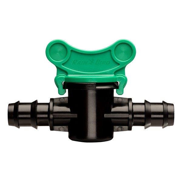 Rain Bird BVAL50-1S Drip Irrigation 1/2" Barbed Valve. Install this robust barbed valve to quickly adjust or shut off flow in 1/2" and 5/8" Drip tubing runs. Helps prevent over or under watering of plants with different moisture needs. Top cap turns to adjust or completely shut-off water flow; ideal for use when making repairs or refining flow to specific plants or watering zones. High-quality barbs grab 5/8" and 1/2" Drip tubing creating a fast, secure and leak-proof connection that stays in place season after season. Constructed of highly durable UV and chemical-resistant materials to assure long life. Designed for working pressure of 0-50 PSI. Simple to insert by hand or for faster installation use Rain Bird's barbed insertion tool: FT/1PK50S (sold separately). Rain Bird “The Intelligent Use of Water”