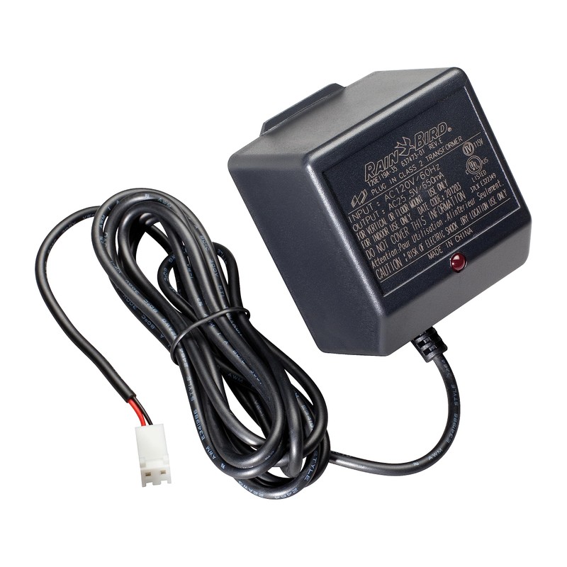 Rain Bird UT1 Replacement Transformer for SST Series Indoor Irrigation Timers. Replacement 24-Volt transformer for use only with the Rain Bird SST indoor irrigation timers/controllers. Easy-to-install wire connector slides directly into any SST irrigation timer/controller with no tools required. **Very Important: this unit designed only for indoor vertical or floor mount use in dry locations. Compatible with the following Rain Bird indoor timer/controller models: SST400I, SST400IN, SST600I, SST600IN, SST900I, AND SST900IN. Specifications: UL Rated; Input AC120V / 60Hz; Output AC25.5V / 650mA. Rain Bird “The Intelligent Use of Water"