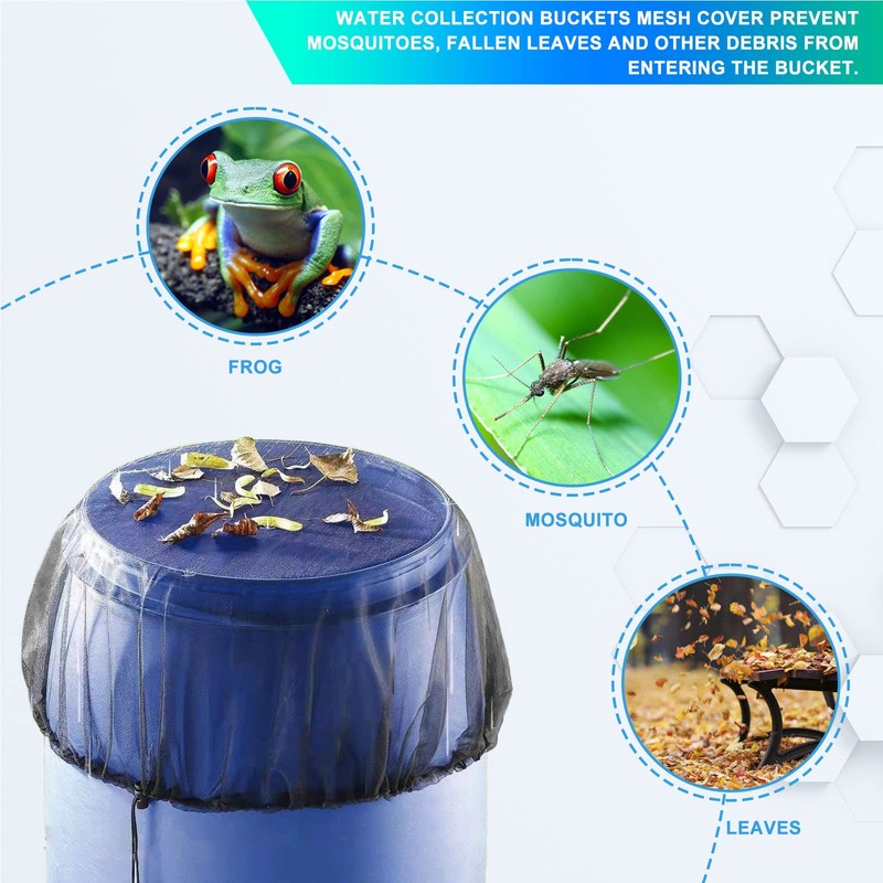 - Easy to install: simply put the rain butt net over the water bucket and fix it with the help of the drawstring. With practical drawstring, easy and convenient. Water butt net with elastic band can be better connected to a water butt with a smaller diameter to prevent it from being blown away by the wind.