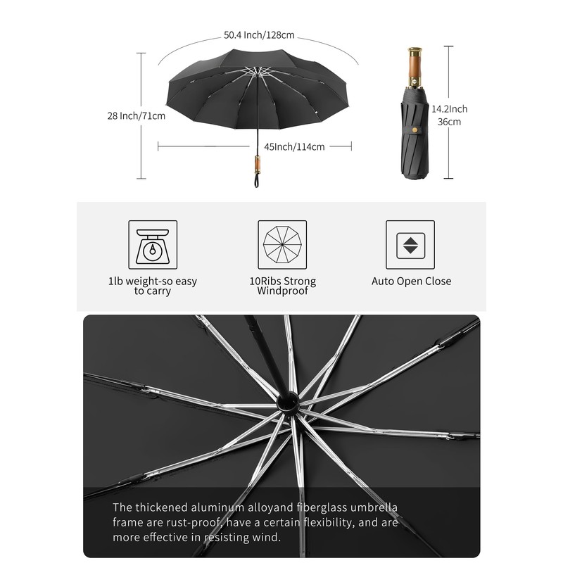 - 🌂Windproof:10 reinforced fiberglass ribs flex slightly in powerful gusts keeping the umbrella from turning inside out and leaving you soaked.