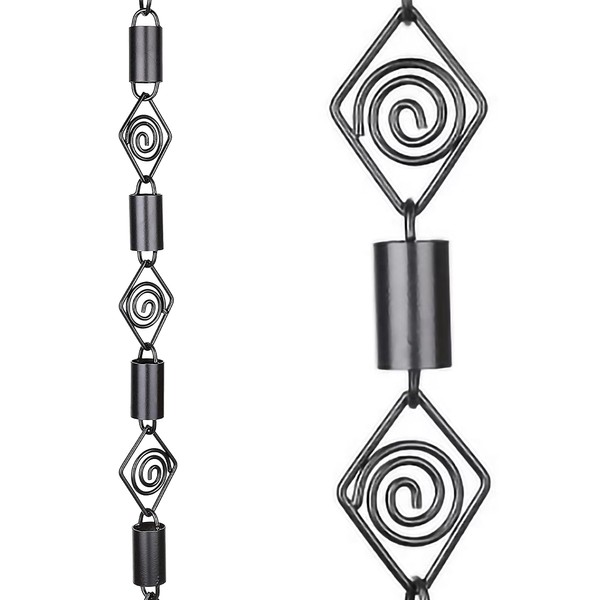 Rain Chains Pacific - Dimond Link Rain Chain 8.5 FT – Black Powder-Coated Aluminum - Functional and Decorative Replacement for Gutter Downspouts - Premium Rain Chains for Gutter