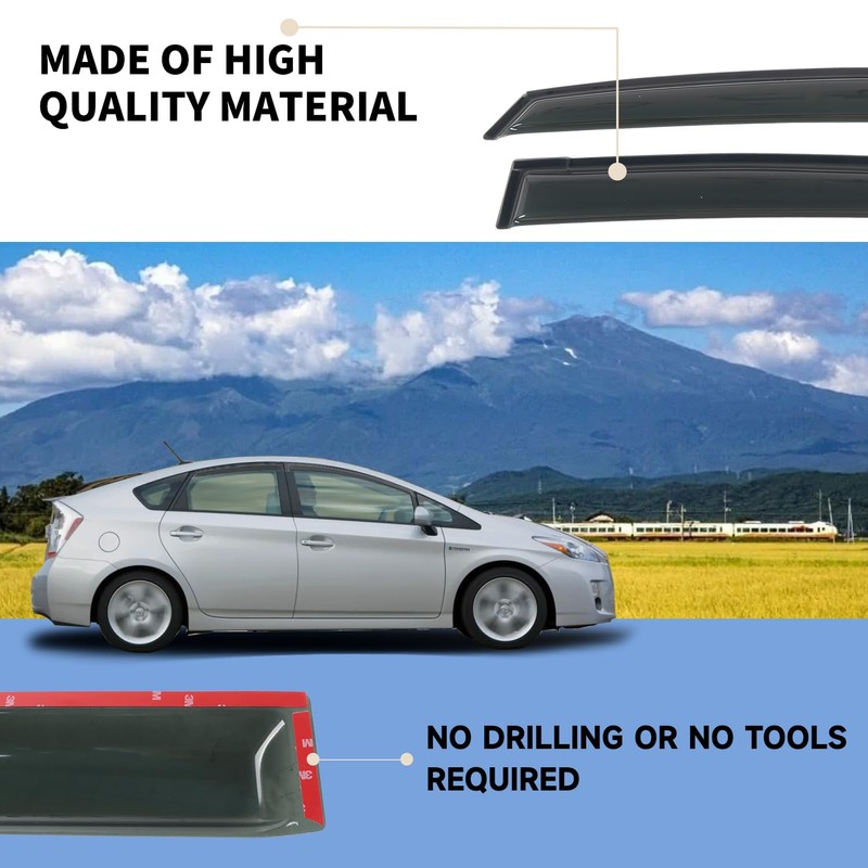 - Fitment: CHYKORLA automotive window rain guards ONLY CUSTOM Compatible with Toyota Prius 2010 2011 2012 2013 2014 2015 ( Excludes Prius V & Prius C )