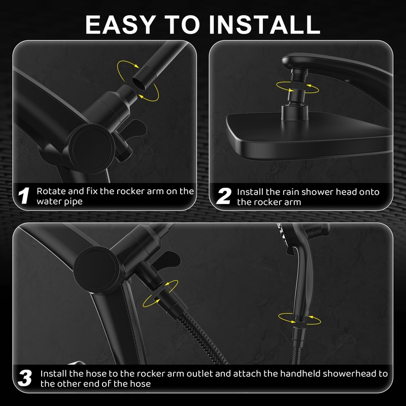 - 12 Inch Rainfall Square Head & Self-Cleaning Nozzles Immerse in pure luxury! The large 12 inch square rain shower head delivers a full-body rainfall sensation. Enjoy complete coverage and relaxing rain shower head showers with easy-clean nozzles that resist clogging.