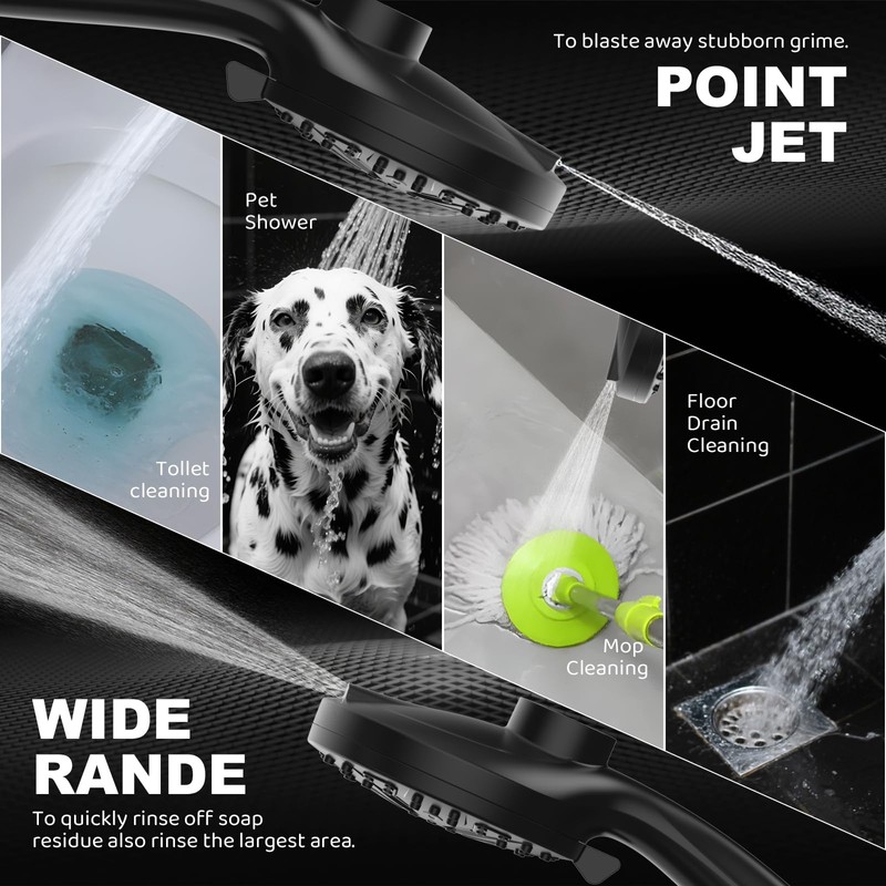 - 10-Setting High Pressure Handheld Sprayer (Clean & Versatile) Unleash versatility with the handheld shower head! Choose from 10 powerful spray settings, including 2 turbo jets perfect for rinsing pets, cleaning bathrooms, or powerful body massage. Tackle any task.