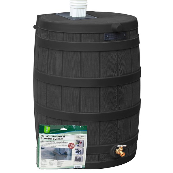 Rain Wizard 50 Gallon Rain Barrel with Diverter Kit - Black