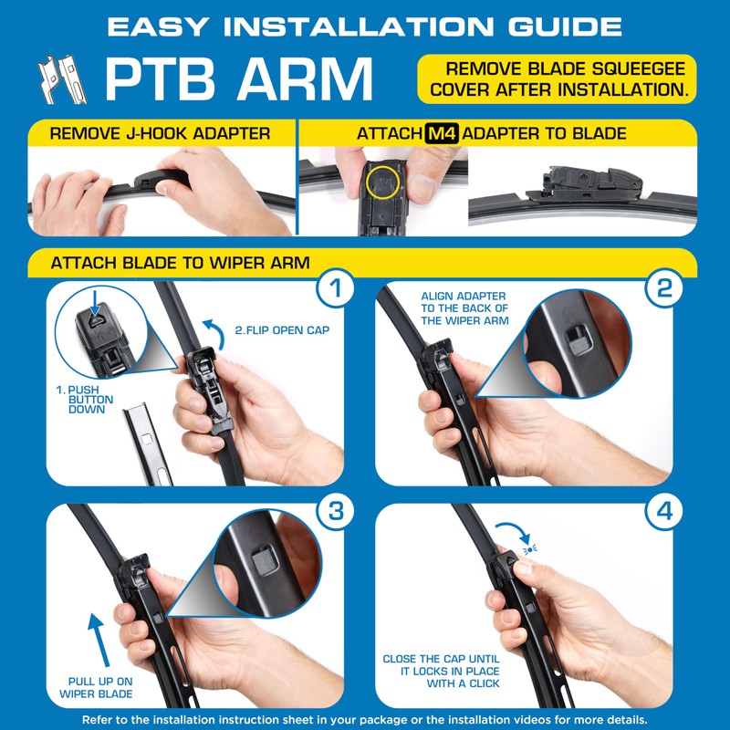 - Quiet Operation - Featuring a graphite-coated, synthetic rubber squeegee that helps reduce friction and related noise during usage. DISCLAIMER: Please remove the yellow squeegee cover after installation to ensure optimal performance. Failure to do so will prevent the wiper blades from working properly.