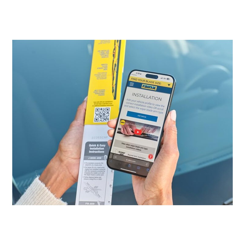 Rain-X, a recognized and respected name in wiper blades for almost 20 years, is committed to providing you with the confidence of improved driving visibility. For over 15 years, Rain-X WeatherBeater (the original WeatherBeater wiper blade) is still known and trusted for its quality, durability, and value. WeatherBeater has been designed to be a high-quality traditional wiper blade that meets or exceeds all original equipment manufacturers' standards for quality, durability, and construction. This conventional blade features a natural rubber squeegee, a classic galvanized steel frame, multiple pressure points, and embedded friction reducers. The natural rubber squeegee provides resistance to cracking and splitting caused by weather, windshield wiper fluid, and road salt. The galvanized steel frame provides long-lasting strength and durability while also preventing rust and corrosion. Multiple pressure points and embedded friction reducers enable even pressure distribution across the length of the blade and help provide a clean wipe. If you need additional help with determining the right wiper blade size for your car, reference our Blade Finder or Amazon's Confirmed Fit program. If you need help with installing your new wiper blades, installation videos can be found by scanning the QR code on the back of your wiper blade's packaging.