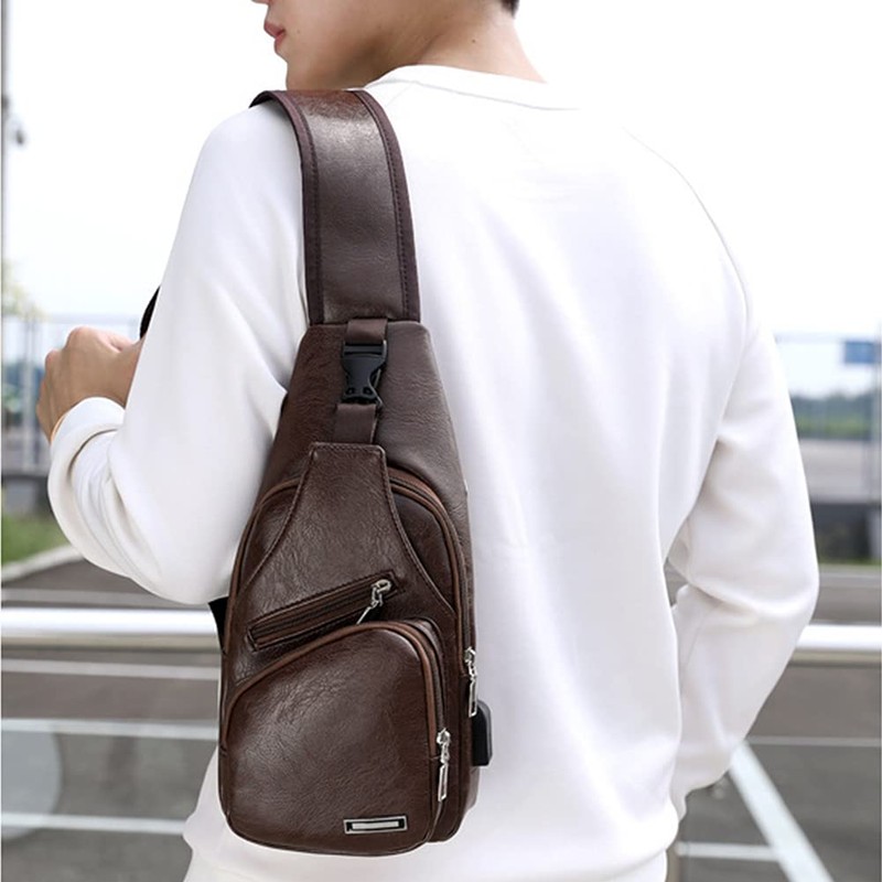 RainboSee Men's Sling Bag Small Chest Shoulder Bag Crossbody Backpack Hiking Multipurpose Messenger Multipurpose Daypack with USB Charging Port Coffee