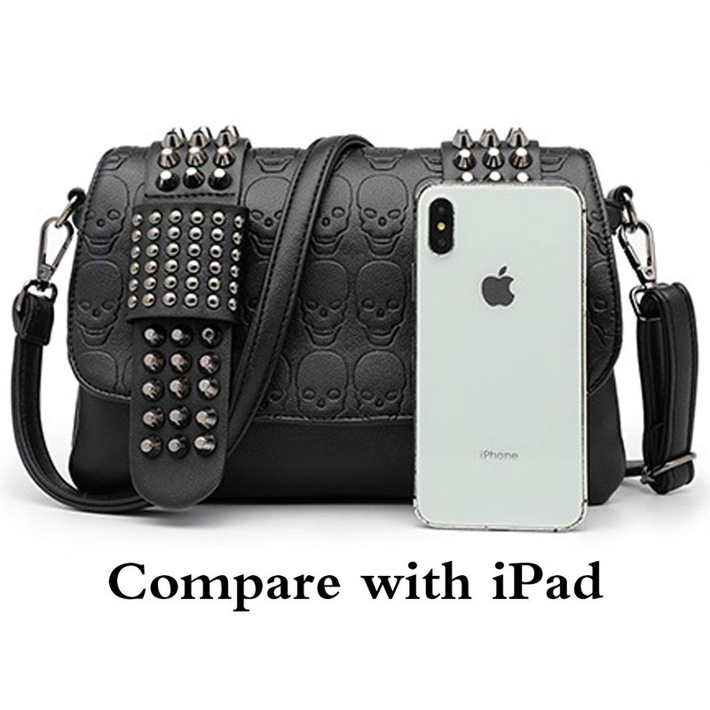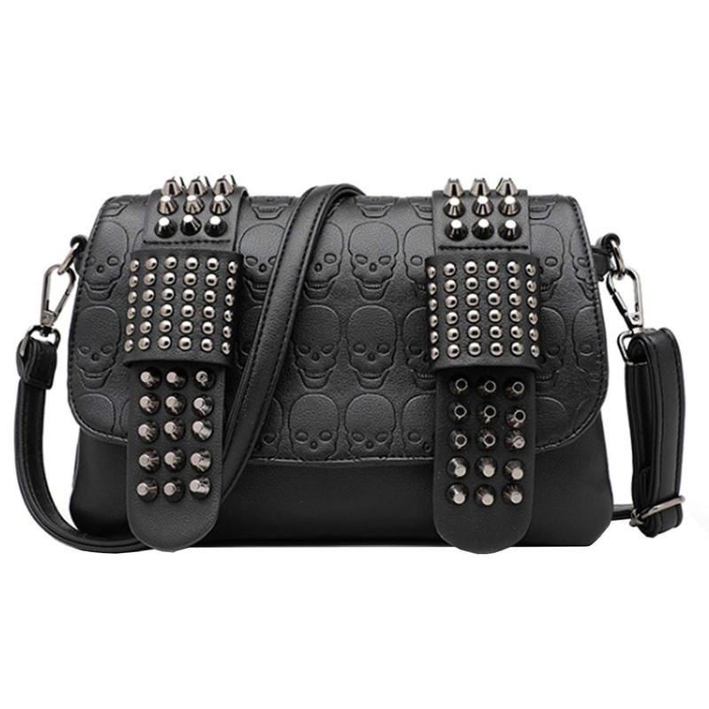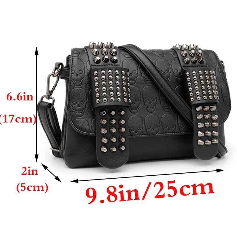 • ❤ Features: Punk style and Skull Rivet design.Unique goth purse with 2 straps, One 20.86 inch detachable single shoulder bag strap + One adjustable and detachable long strap.You can use it as a handbag ,shoulder bag or a crossbody bag.
