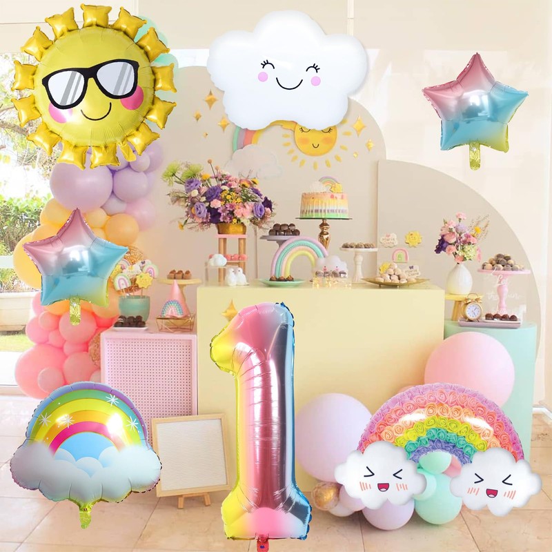 ✔Perfect for girls' sun-themed birthday decorations, rainbow-themed balloons, or sunshine party supplies, rainbow party decorations, first trip around the sun banner balloons, etc.