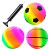Rainbow Balls Inflation Beach Balls PVC Bouncy Kickball Flap Ball with Pump, 3 Pieces Soft Balls, Football, Basketball, Rainbow Sports Balls for Indoor Outdoor Use