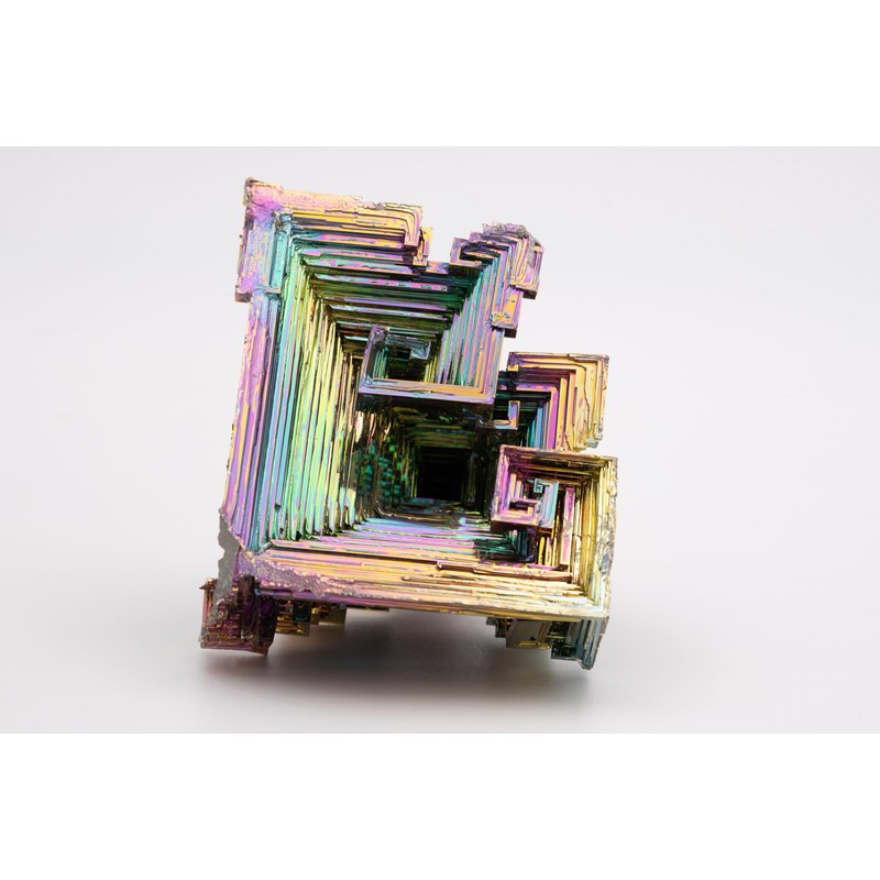 - Natural rainbow colors develop as the crystal is exposed to air and cools that then create the luminescent iridescent colors of the rainbow that you see in the infinite pyramid structure. Packaged properly to be protected and well-cushioned to prevent breakage. But be aware Bismuth crystals are brittle so if dropped they may break into multiple pieces, but still beautiful and unique pieces. Bismuth may have sharp edges and should be handled carefully.