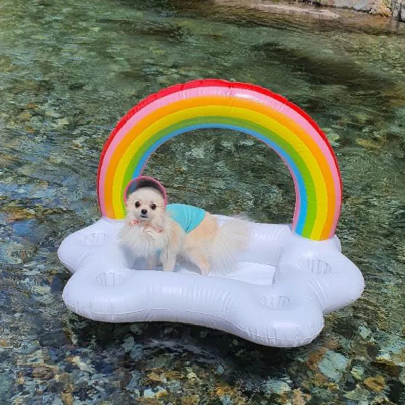 🐾 Treat your furry friend to the ultimate summer relaxation with this vibrant rainbow cloud pool float, designed specifically for dogs.