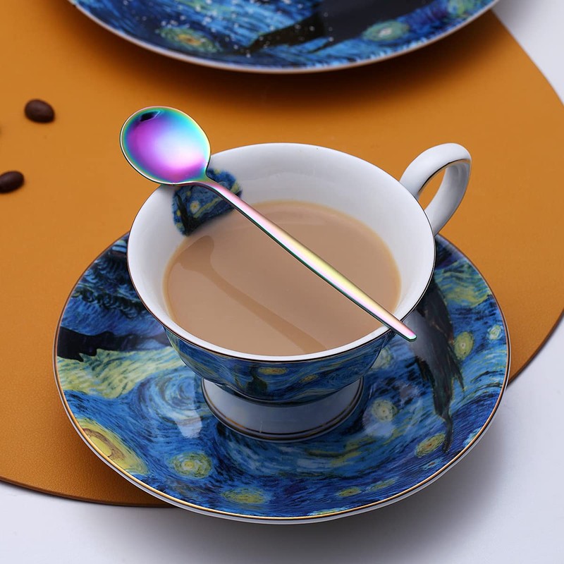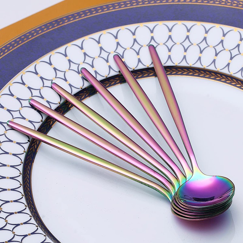 - Includin 6 Pieces Stainless Steel Titanium Plated Rainbow Coffee Spoons.