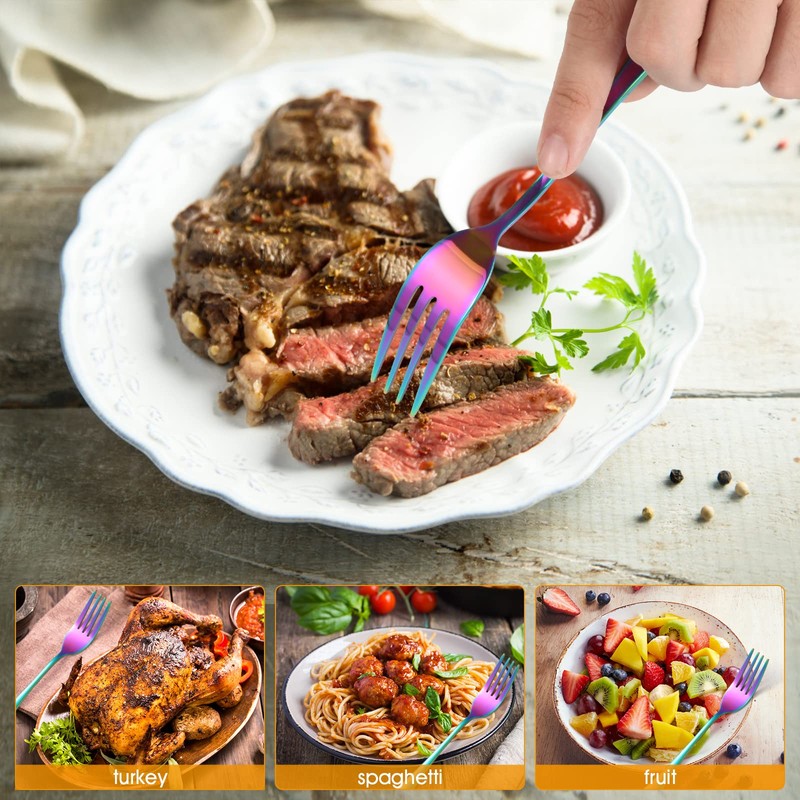 Rainbow Dinner Forks and Spoons Silverware Set, 16-Piece Stainless Steel Flatware Cutlery for Kitchen Home Restaurant, Iridescent Fork and Tablespoon
