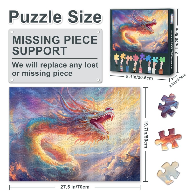 Rainbow Dragon Jigsaw Puzzles 1000 Pieces for Adults Mythical Creatures puzzle 1000 Pieces Challenging & Vivid Detail Ideal for Puzzle Enthusiasts Finished Size: 70x50cm