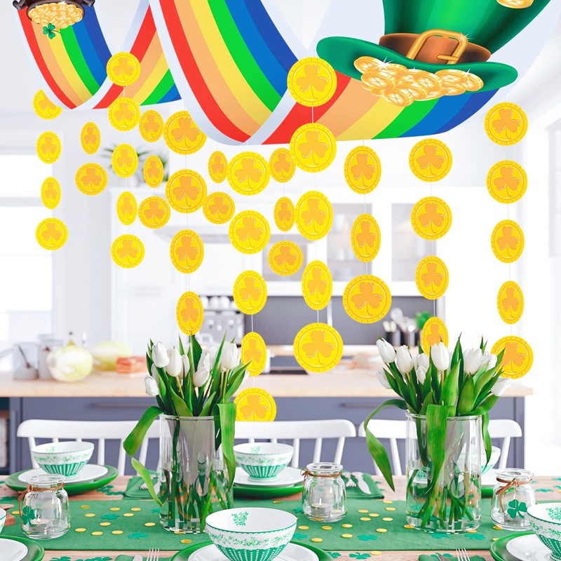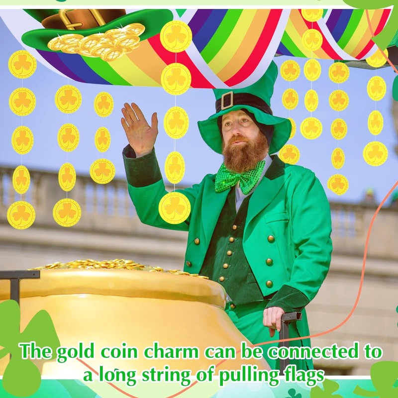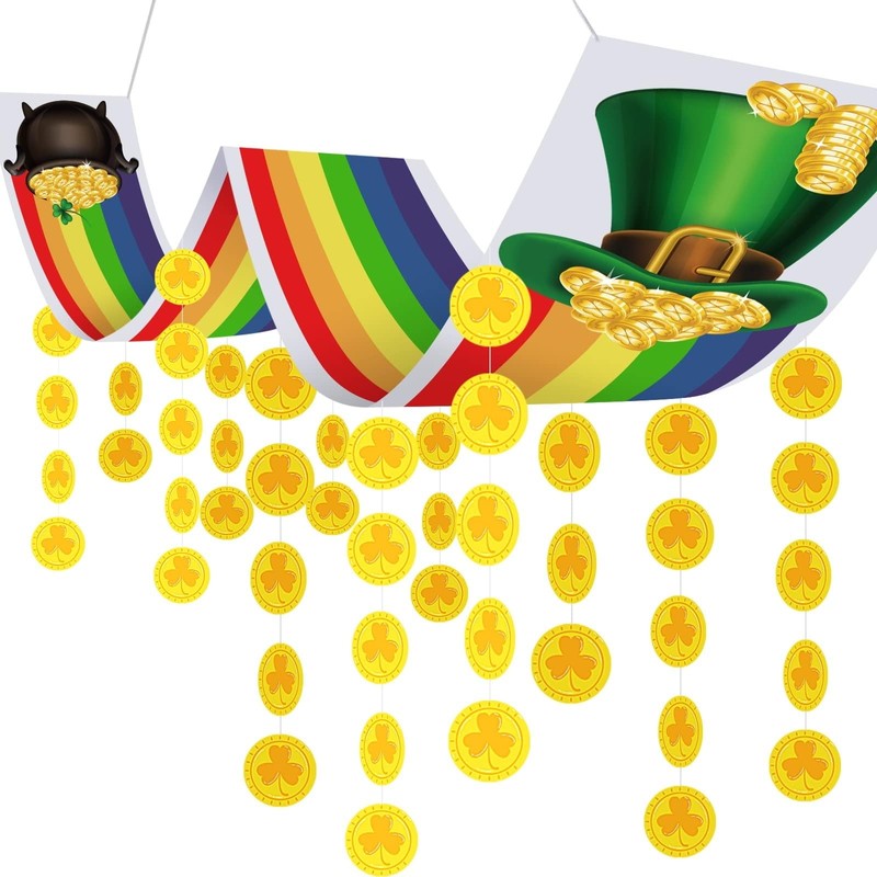 - St. Patrick's Day Theme Decoration:The set includes a 12 feet gold pot rainbow banner and 24 lucky shamrock coin hangers, perfect for your leprechaun party supplies or St. Patrick's Day decoration.