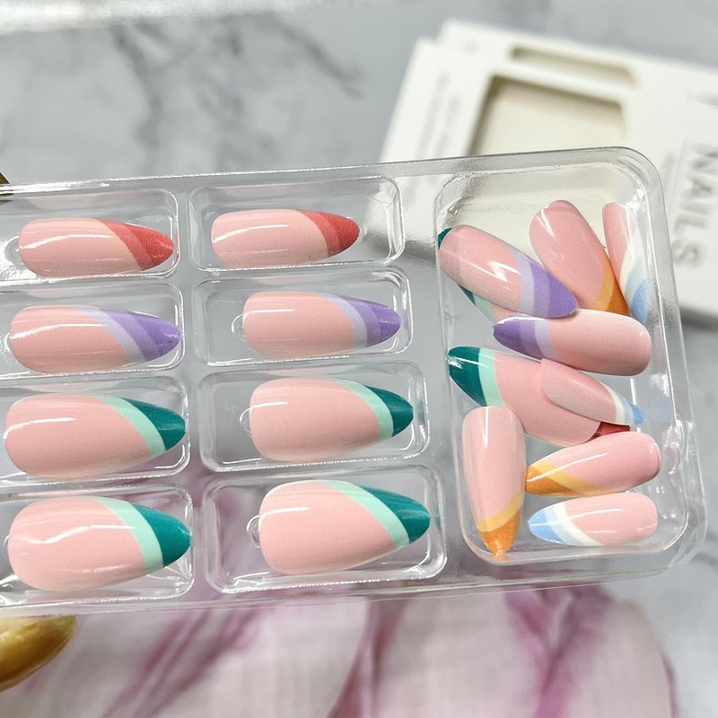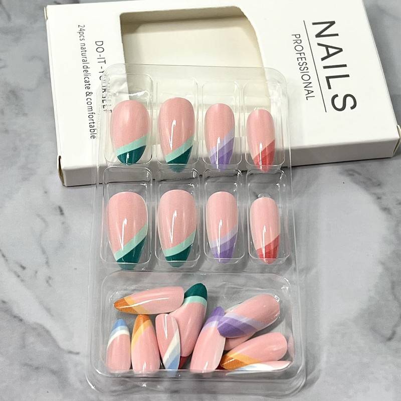 - Worry Free After Sales: If you have any questions about this long oval multicolor french tip fake nails, please feel free to contact us by email and we will solve it for you