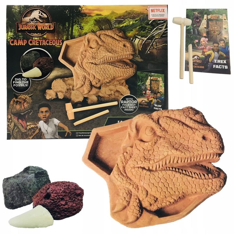 - It has dimensions of 31 x 27 x 5 cm. Simulate a character from your favorite movie today. Jurassic World Cretaceous Camp Fossil Digging Set comes with 3 dinosaur fossils